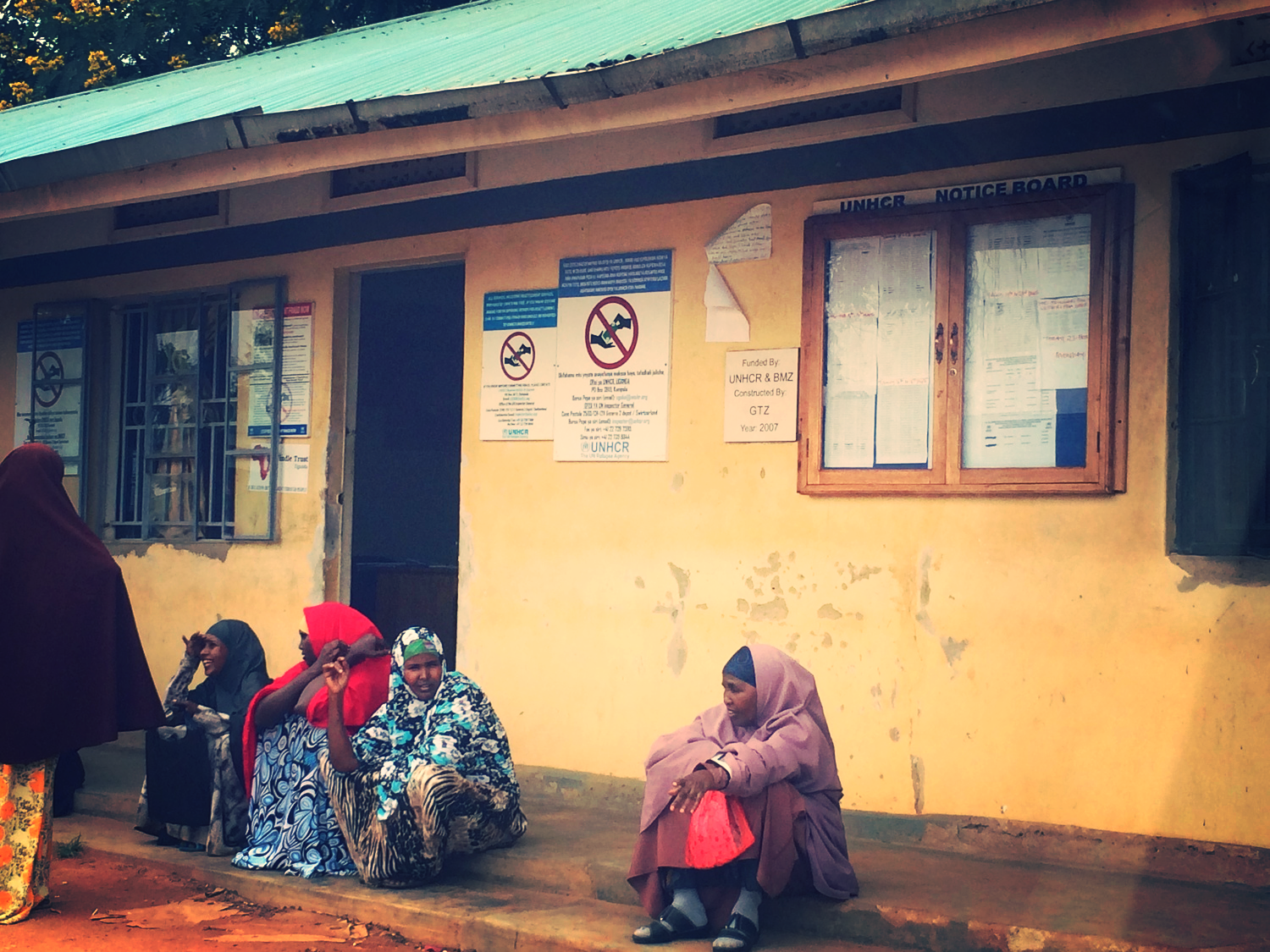 Somali women waiting for refugee status updates to be posted on the UNHCR Notice Board
