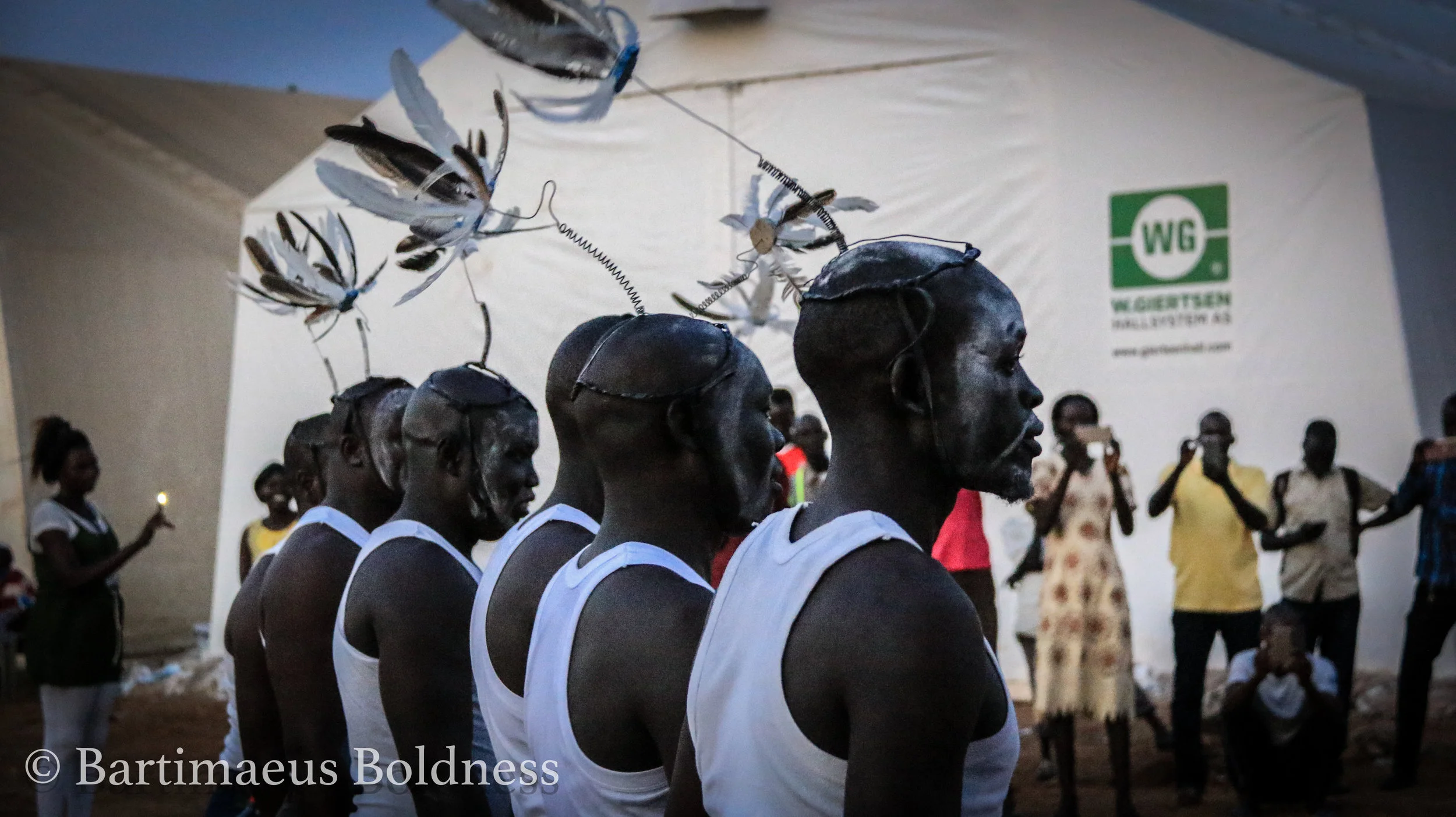 The real stars of the night however, were the Acholi group. They danced their way into the open, the women coming first and then the men. They had fashioned headpieces out of feathers, wire coiling and metal washers. The women all wore, full pleated skirts which served to accentuate even the slightest hip or buttock shake. The dance was beautiful. It was a song. A story. Ultimately, it was a dance of Peace.