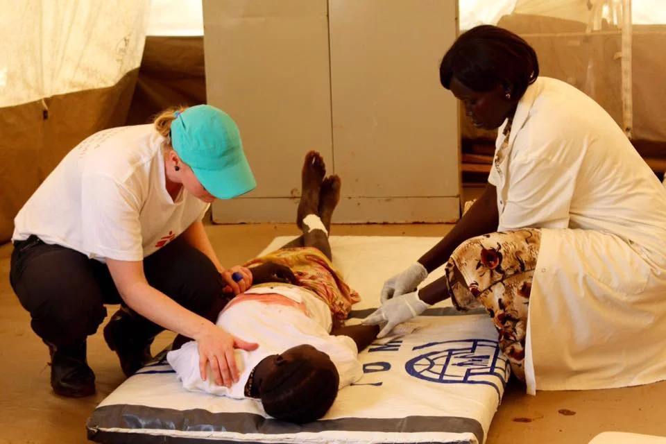 Once the drill was officially underway, we ran to our ‘assigned’ places. My job was to supervise the nurses and nursing care in the yellow and blue zones. Yellow patients are those who are injured (broken leg, lacerations/wounds, etc.) but whose injuries can wait; i.e. they are not imminently life threatening. Yellow patients should be closely monitored as they can quickly become Red patients (those patients requiring immediate life-saving intervention). Blue patients are those whose injuries are too severe to justify expending hours of time and care to save; they will most likely not make it, however once all of the other patients are treated, blue patients who are still living can then be taken to surgery if resources permit. The normal hospital patients must have thought we were crazy and wondered what the heck we were doing, bringing in loads of fake patients covered in fake blood. Crowd control was most certainly an issue as everyone wanted to see what was going on. As soon as the patients were carried in on stretchers, chaos ensued. I thought I had clearly explained to the nurses under my supervision where they should be working, however any direction given was quickly forgotten once the patients started pouring in. Communication was further hampered by language barriers and lack of available translators. It was a struggle to keep staff away from the ‘Red’ side as emergency patients were much more exciting than ‘blue’ patients for example who would most likely die. Keeping a nurse in the blue tent was quite the challenge. The most surprising part about the whole event was the degree of seriousness assumed by our fake patients. It was actually a bit out of control. Everyone wanted to pretend that they were dying! Patients laid on mats covering the floor, groaning, moaning, wailing, curled up in a fetal position. I would go look at their ‘diagnosis/story’ card and it would read, ‘Patient can walk and talk. They have a broken tibia fracture but are stable’. Instead I would find this patient barely able to move, pretending that they were dead. Transferring and lifting patients was a whole other ordeal as patients who should have been able to walk refused to move. It’s no wonder we didn’t all break our backs. One young girl became so wrapped up in her ‘role’ that she actually started to hyperventilate and almost passed out! It was unbelievable how serious the patients took something which was meant to be a drill. Hollywood, if you need some fresh talent in your acting pool, I suggest you come to South Sudan for recruitment.